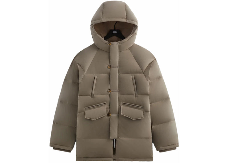 The Leroy Parka features classic wrinkle nylon with a quilted interior and down filling. It includes ribbed cuffs, a full-zip front with an extended hood, Kith-branded placket buttons, and secure...