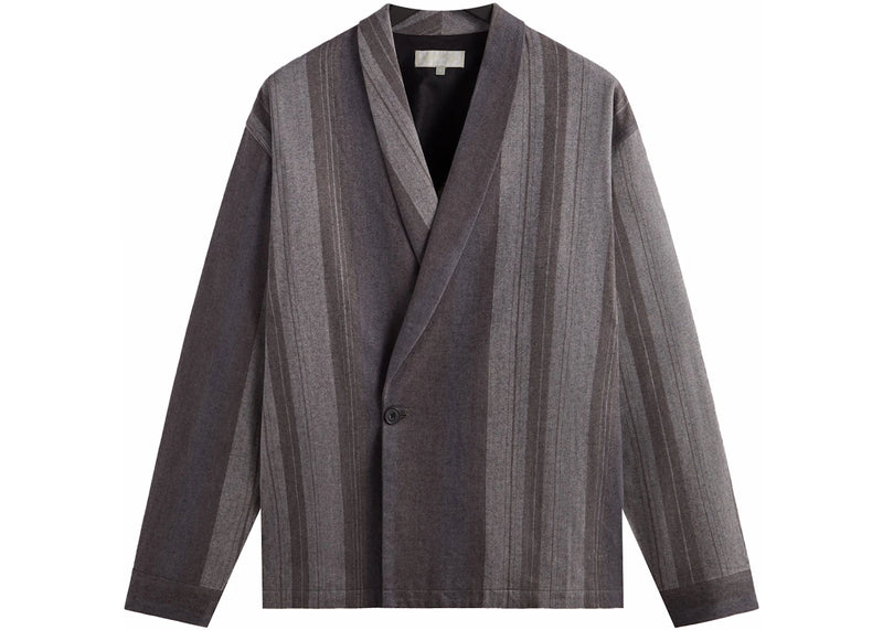 The Long Sleeve Thompson Crossover Shirt is made from cotton fabric with large, variegated stripes and a cross-over front design. It includes a Kith-branded button closure and Kith Script embroidery...