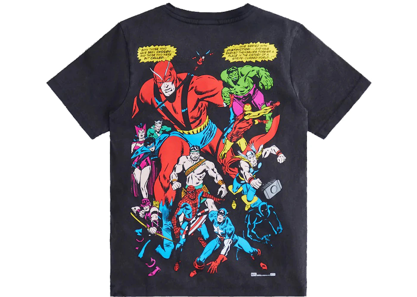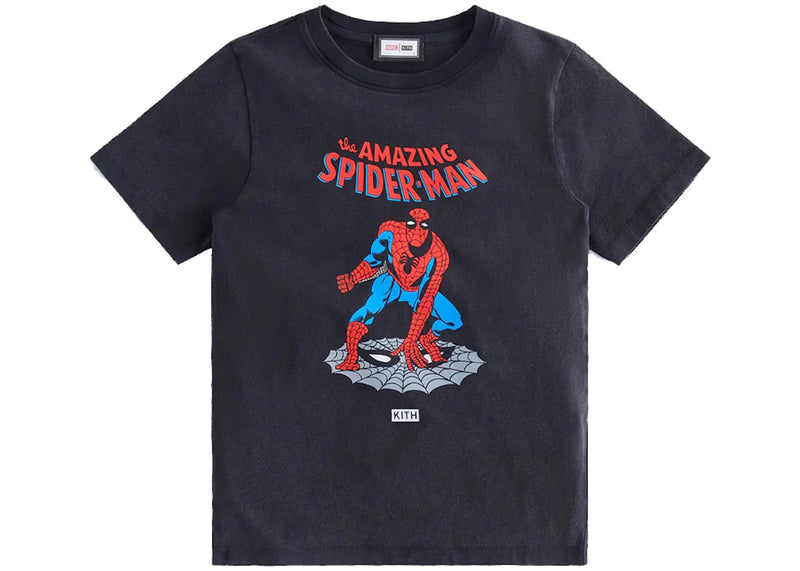 The Kith Marvel Kids Spider-Man Allies Vintage Tee Black is now available at Side Kicks!
