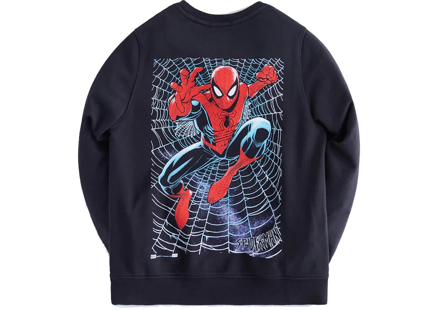 The Kith Marvel Kids Spider-Man Web Logo Crew Black is now available at Side Kicks!