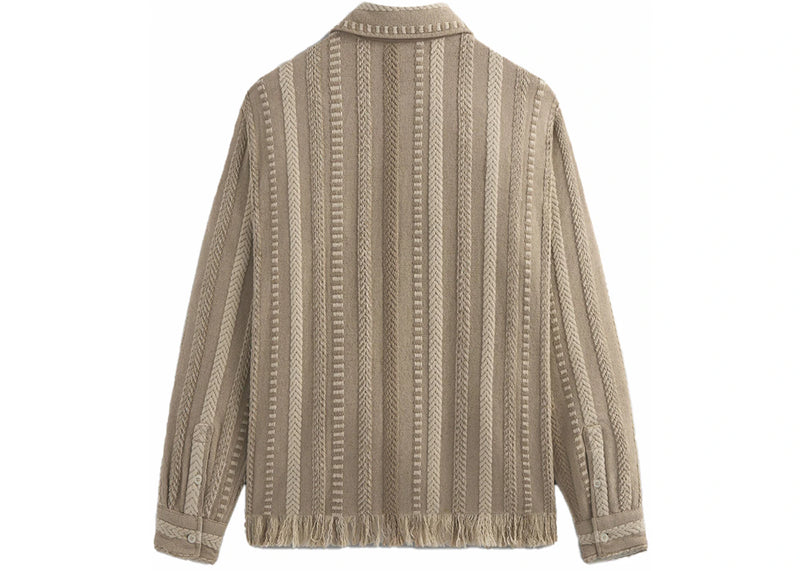 The Kith Mixed Stripe Tweed Boxy Collared Overshirt Creme is now available at Side Kicks!