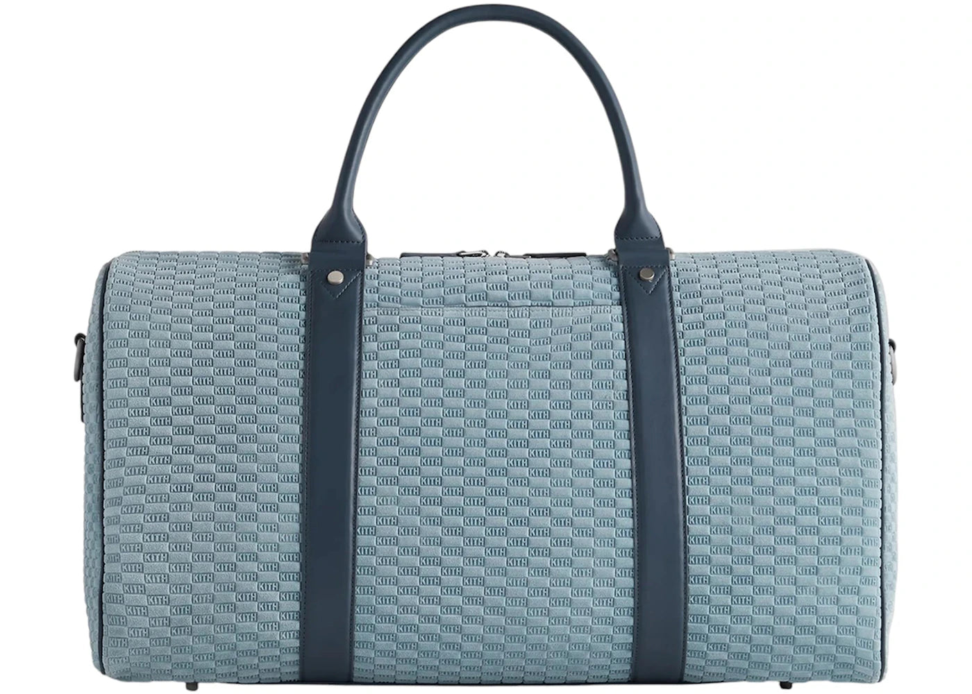 The Kith Monogram Suede Duffle Bag Mist is now available at Side Kicks!