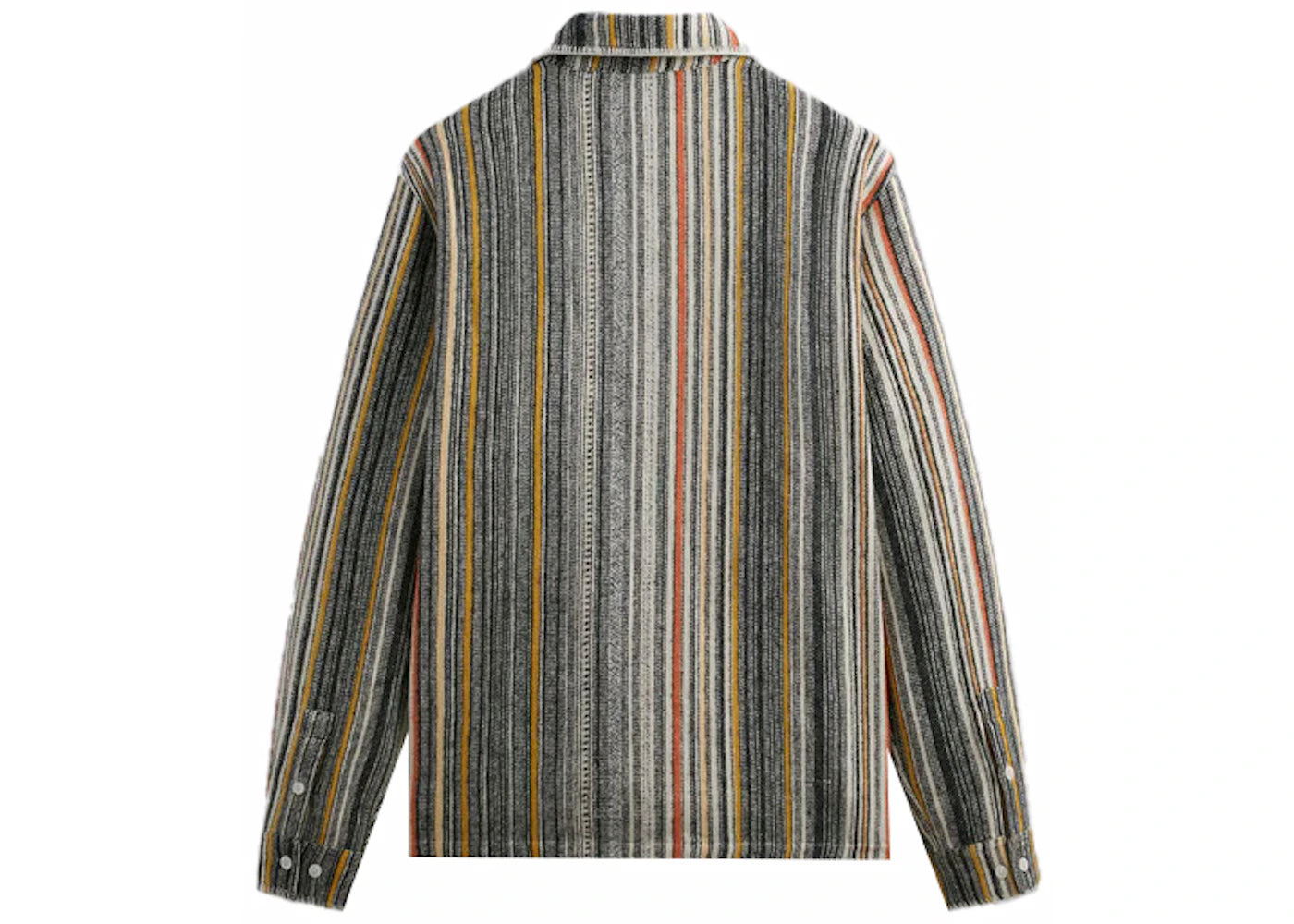The Kith Multi Stripe L/S Boxy Collared Overshirt Sandrift is now available at Side Kicks!