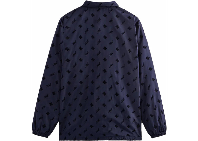 The Kith Needles Flocked Nylon Coaches Jacket Nocturnal is now available at Side Kicks!