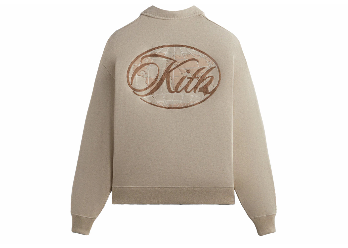 The Nelson Quarter Zip Rugby is made from 450GSM cotton heather fleece with a garment-washed finish. It includes ribbed hem and sleeve cuffs for a secure fit. A Kith-branded zip closure sits at the neckline, while custom chain-stitched embroidery adorns the chest and back. Released on {date}, the Nelson Quarter Zip Rugby is available now at Side Kicks.