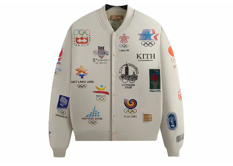 The Kith Olympics Heritage Marvin Bomber Jacket Sandy Heather is now available at Side Kicks!