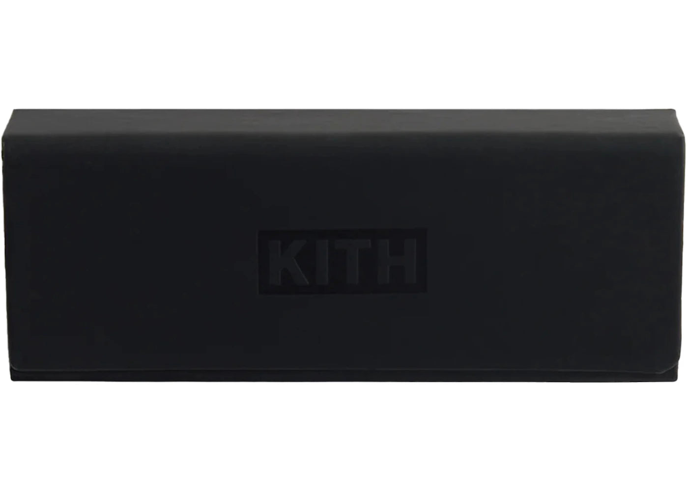 The Orosei Sunglasses feature a modified square silhouette with hand-cut acetate frames and steel hinges. Made in Japan, they provide 100% UVA/UVB protection with non-polarized lenses. Kith branding appears on the temples and inner bridge. A branded hard clamshell case and black cleaning cloth are included. Released on {date}, the Orosei Sunglasses are available now at Side Kicks.