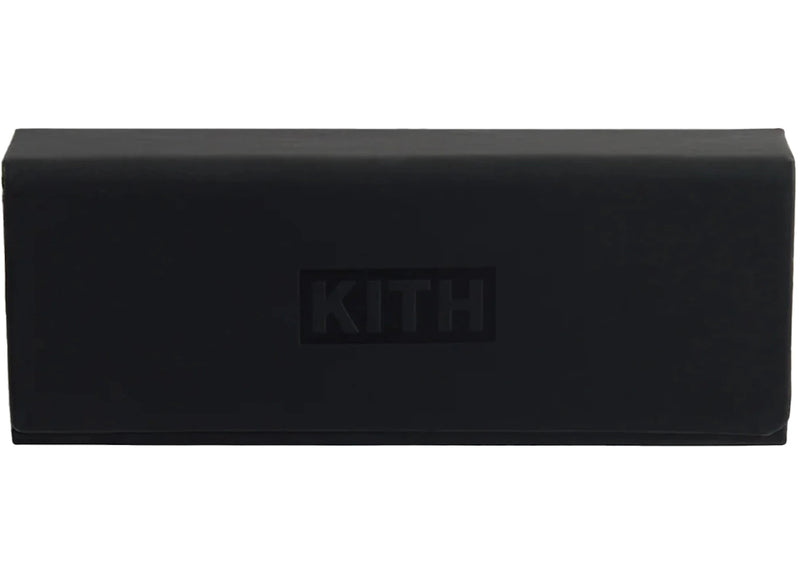The Orosei Sunglasses feature a modified combination square silhouette, crafted from hand-cut acetate with steel hinges. Made in Japan, they offer non-polarized 100% UVA/UVB protection. The temples and inner bridge display Kith branding. A branded hard clamshell case and black cleaning cloth are included. Released on {date}, the Orosei Sunglasses are available now at Side Kicks.