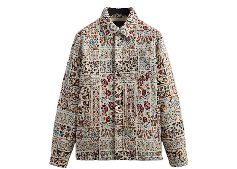 The Kith Paisley Brixton Puffed Shirt Jacket Sandrift is now available at Side Kicks!