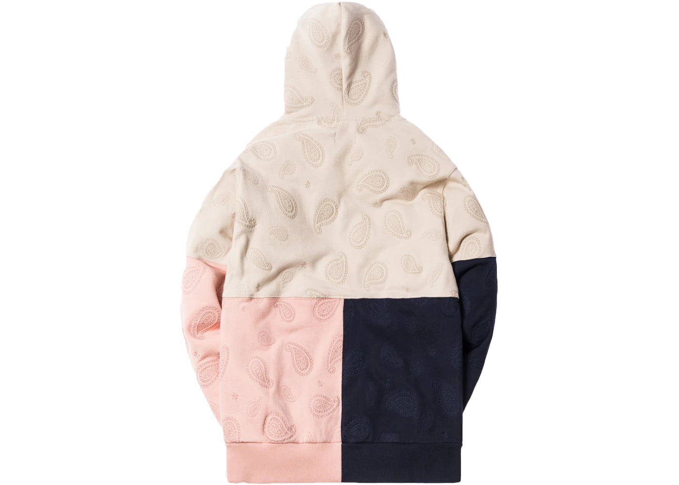 The Kith Paisley Tri-Block Hoodie Ivory/Navy/Coral is now available at Side Kicks!
