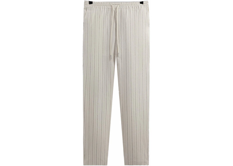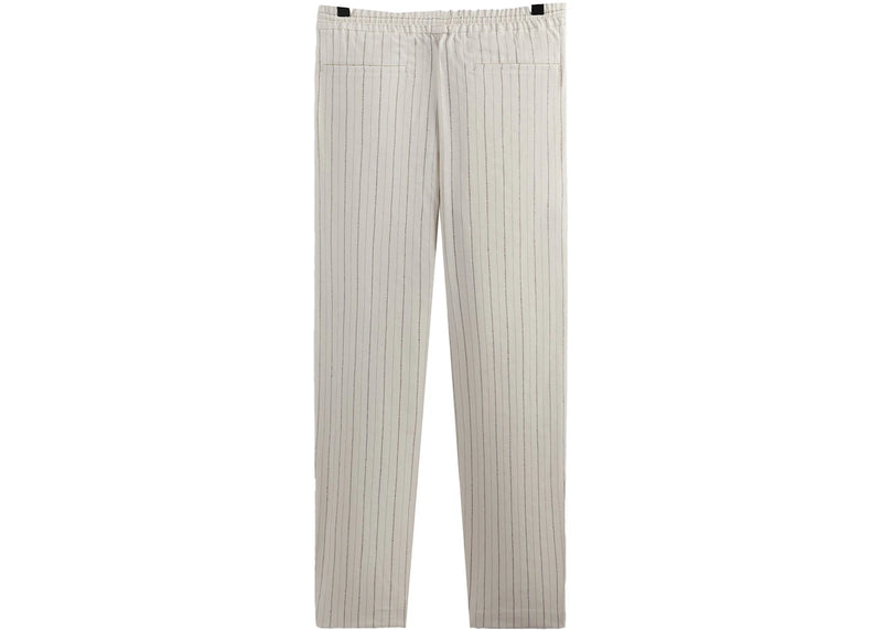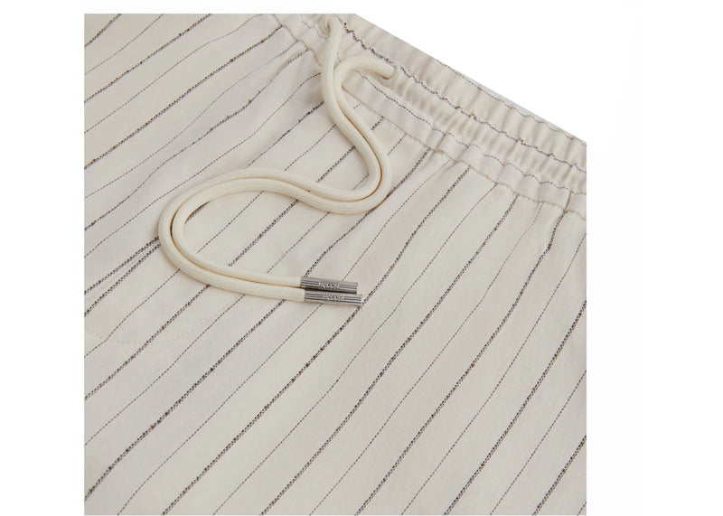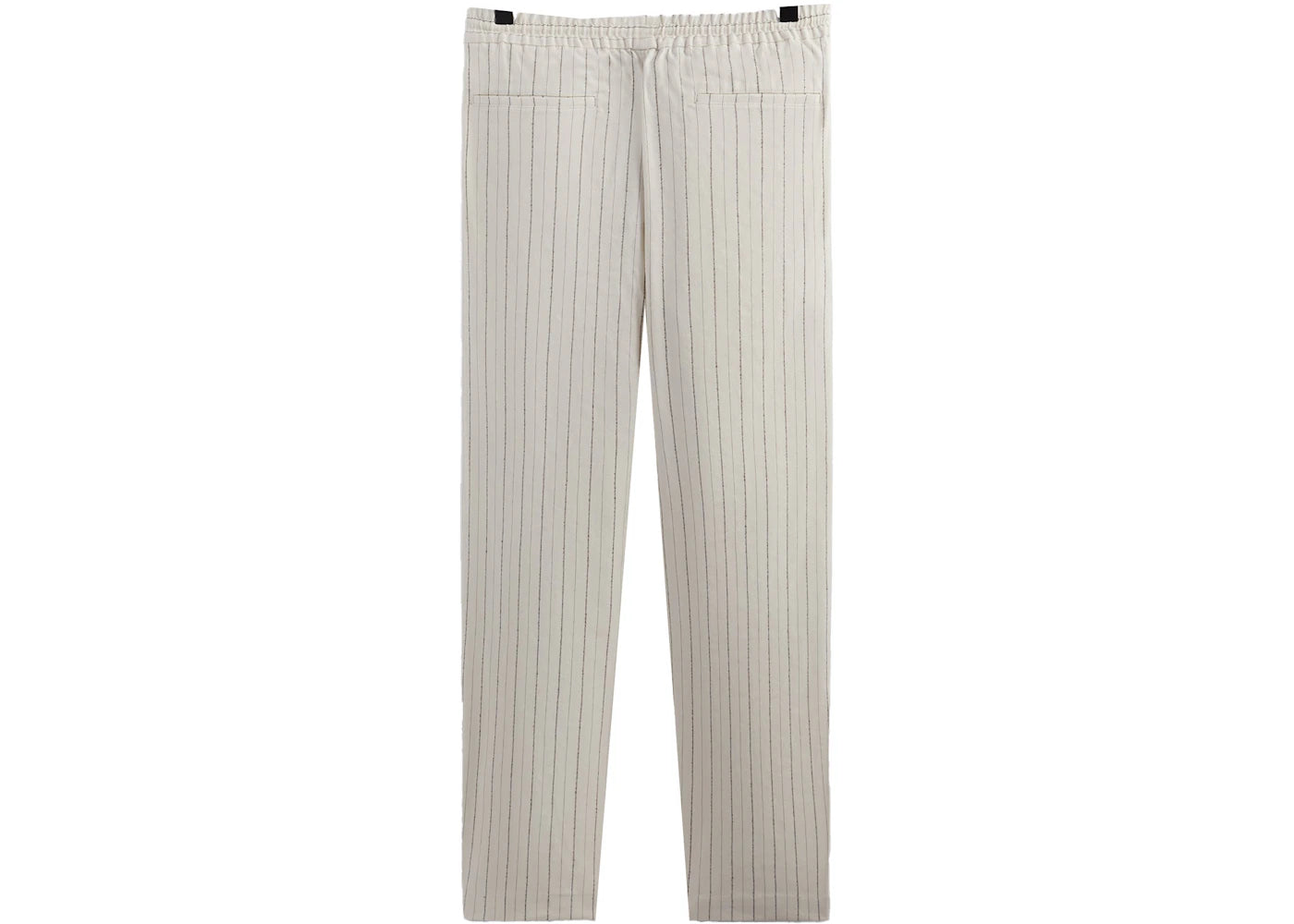 The Striped Twill Barrow Pant features textured Italian tailoring fabric with all-over pinstripes. It includes an elasticated, drawcord-adjustable waistband and front and back pockets for functionality. Released on {date}, the Striped Twill Barrow Pant is available now at Side Kicks.