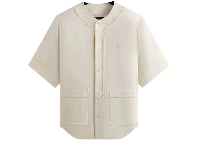 The Kith Washed Denim Willis Baseball Shirt Sandrift is now available at Side Kicks!