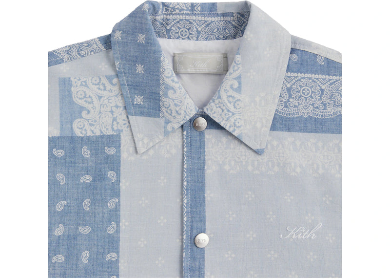 The Kith Washed Paisley Coaches Jacket Light Indigo is now available at Side Kicks!