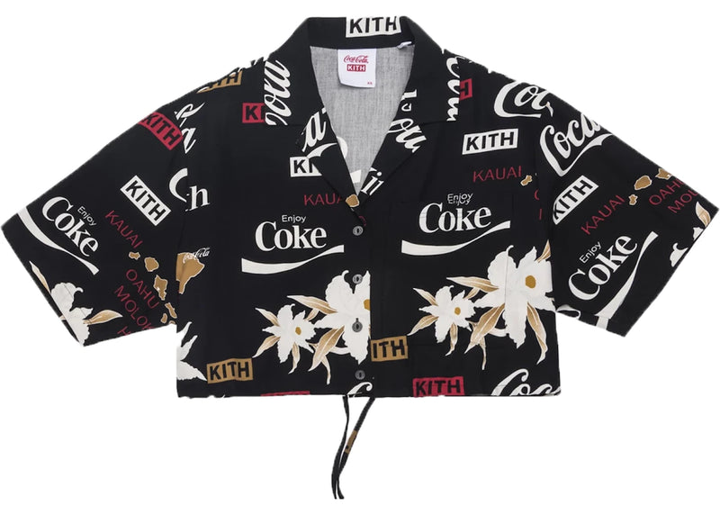 The Kith Women x Coca-Cola Hawaiian Cropped Shirt Black is now available at Side Kicks!
