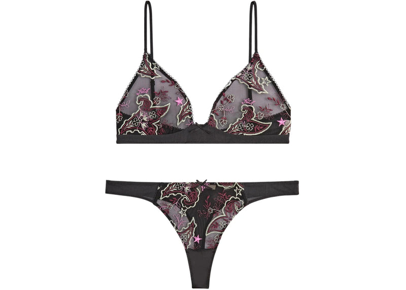 The Kith Women's Embroidered Bra & Thong Set Black is now available at Side Kicks!