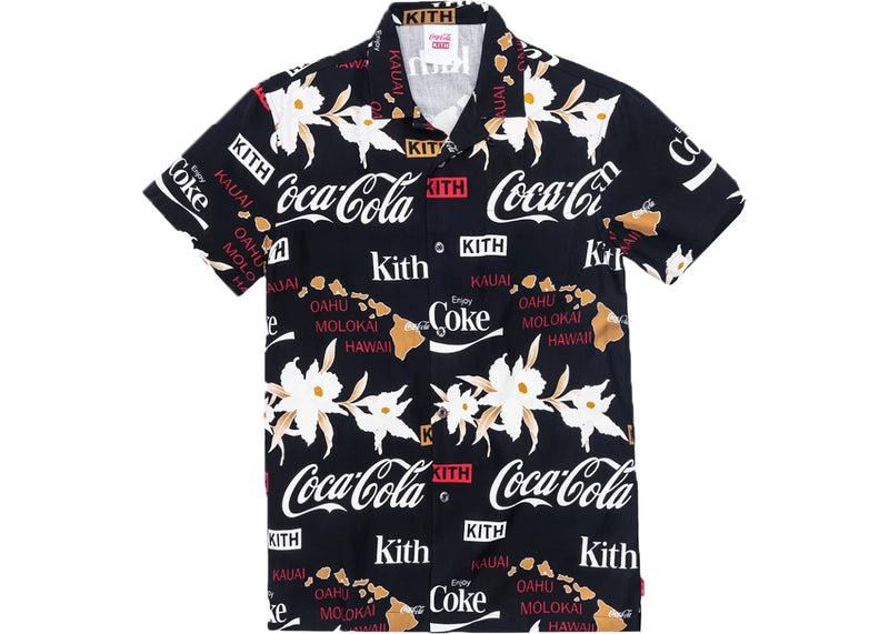 The Kith x Coca-Cola Hawaiian Camp Button Up Black is now available at Side Kicks!