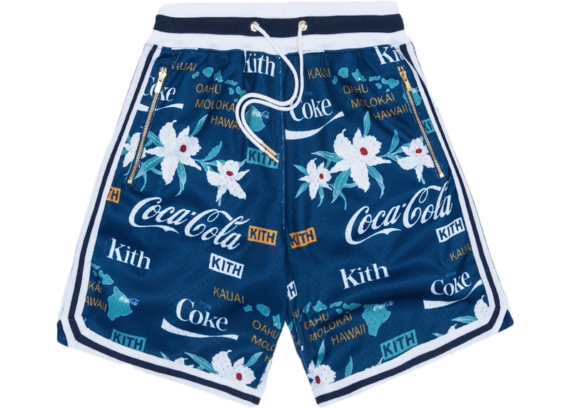 The Kith x Coca-Cola x Mitchell & Ness Hawaii Shorts Blue is now available at Side Kicks!