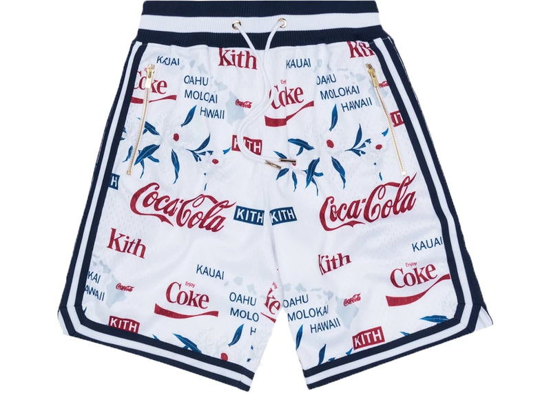 The Kith x Coca-Cola x Mitchell & Ness Hawaii Shorts White is now available at Side Kicks!