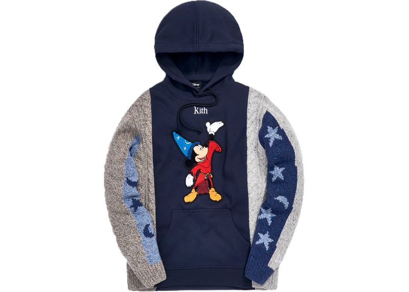 The Kith x Disney Adam Combo Knit Hoodie Red/Navy is now available at Side Kicks!