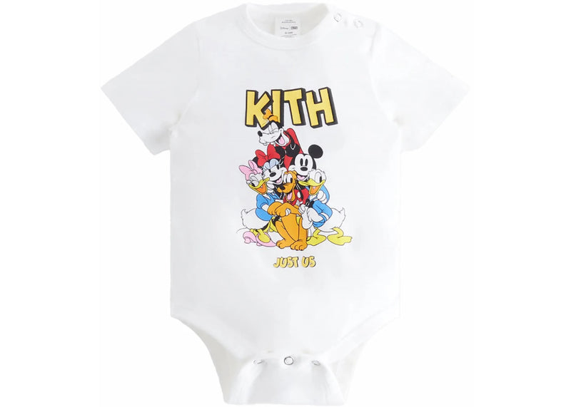 The Kith x Disney Baby Mickey & Friends Best Friends Vintage Onesie White is now available at Side Kicks!