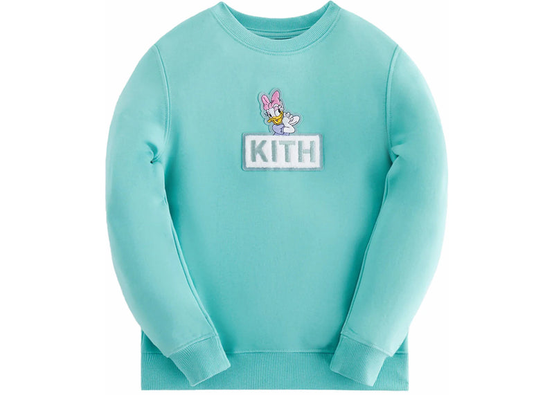 The Kith x Disney Kids Mickey & Friends Daisy Classic Logo Crewneck Mykonos is now available at Side Kicks!