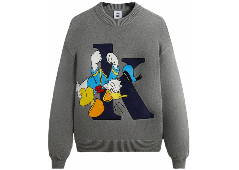 The Kith x Disney Mickey & Friends Donald K Crewneck Sweater Medium Heather Grey is now available at Side Kicks!