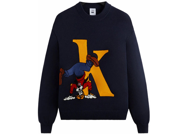 The Kith x Disney Mickey & Friends Goofy K Crewneck Sweater Nocturnal is now available at Side Kicks!