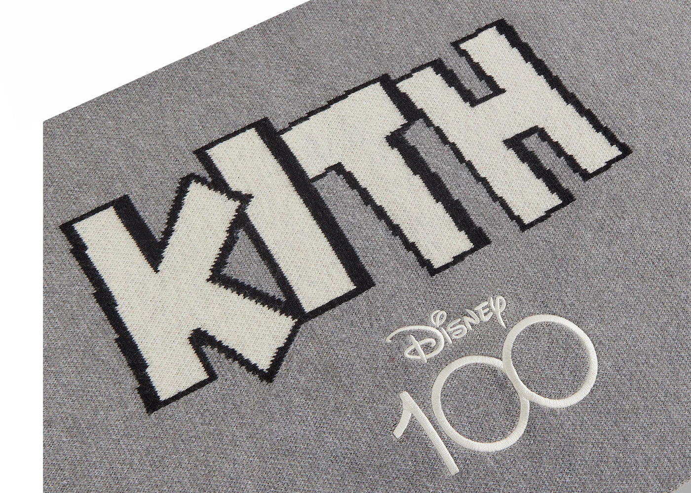 The Kith x Disney Mickey & Friends Knitted Mickey Scarf Light Heather Grey is now available at Side Kicks!