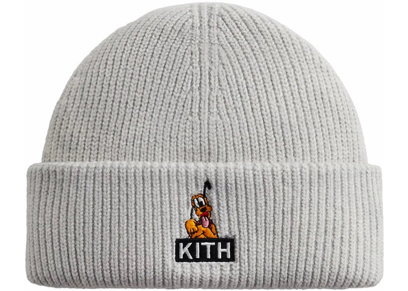 The Kith x Disney Mickey & Friends Pluto Mia Beanie Light Heather Grey is now available at Side Kicks!