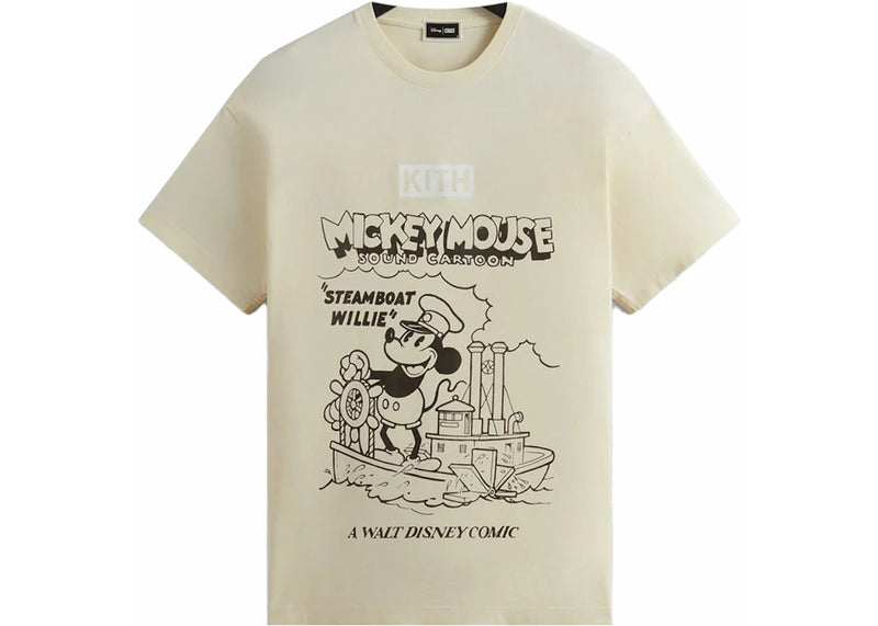 The Kith x Disney Mickey & Friends Steamboat Willie Vintage Tee Sandrift is now available at Side Kicks!