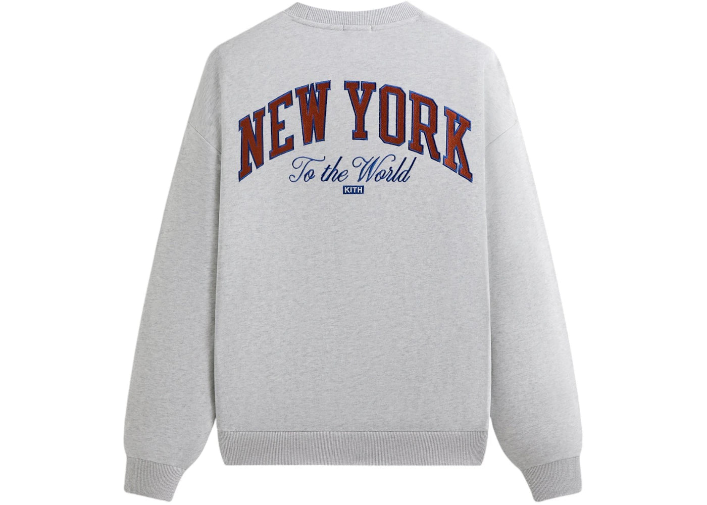 The Kith x New York Knicks Empire Vintage Nelson Crewneck Light Heather Grey is now available at Side Kicks!