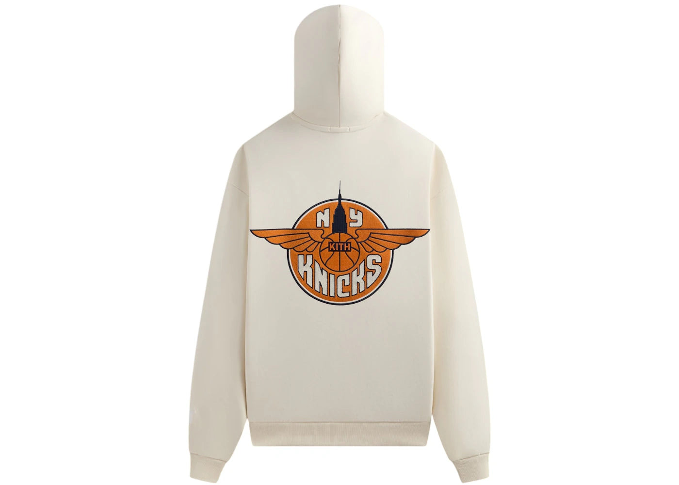 The Kith x New York Knicks Wingman Vintage Nelson Hoodie Sandrift is now available at Side Kicks!