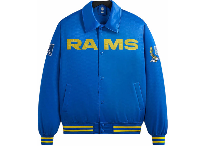 The Kith x NFL Rams Satin Bomber Jacket Greek is now available at Side Kicks!