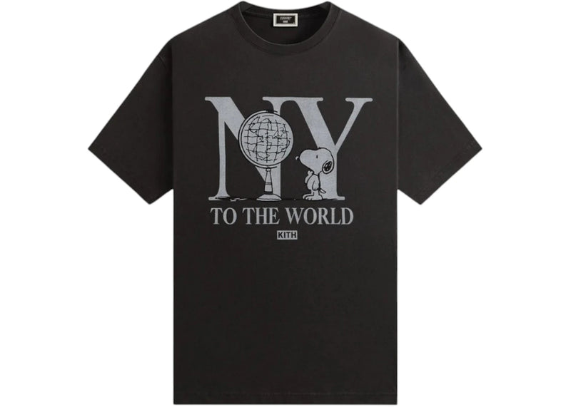 The Kith x Peanuts New York To The World Vintage Tee Black is now available at Side Kicks!