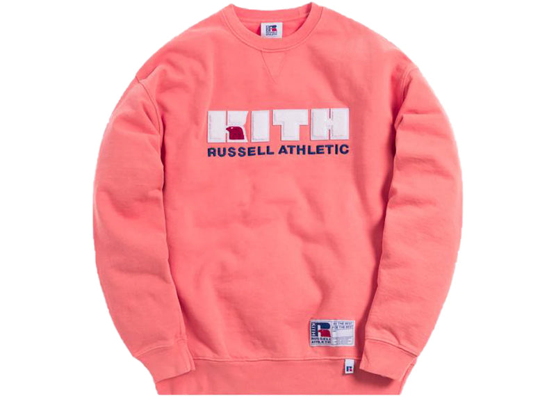 The Kith x Russell Athletic Varsity Logo Crewneck Baroque Rose is now available at Side Kicks!