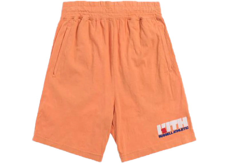 The Kith x Russell Athletic Varsity Logo Shorts Muskmelon is now available at Side Kicks!