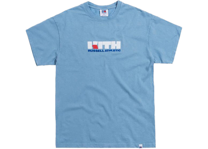 The Kith x Russell Athletic Varsity Logo Tee Blue Shadow is now available at Side Kicks!