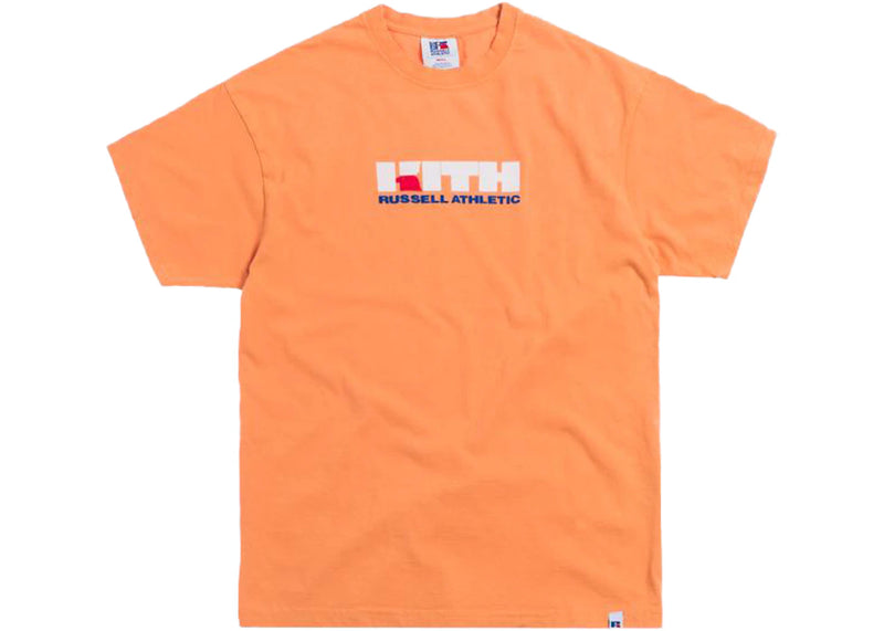 The Kith x Russell Athletic Varsity Logo Tee Muskmelon is now available at Side Kicks!