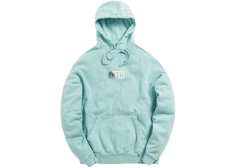 The Kith x Russell Athletic Vintage Hoodie Mist Green is now available at Side Kicks!
