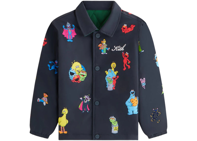 The Kith x Sesame Street Kids Reversible Coaches Jacket Black is now available at Side Kicks!