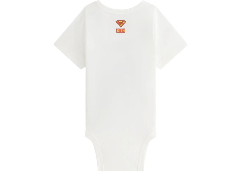 The Kith x Superman Baby Chains Vintage Bodysuit White is now available at Side Kicks!
