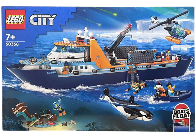 The LEGO City Arctic Explorer Ship Set 60368 is an 815-piece LEGO set featuring a floatable boat and accompanying accessories that model ocean exploration.