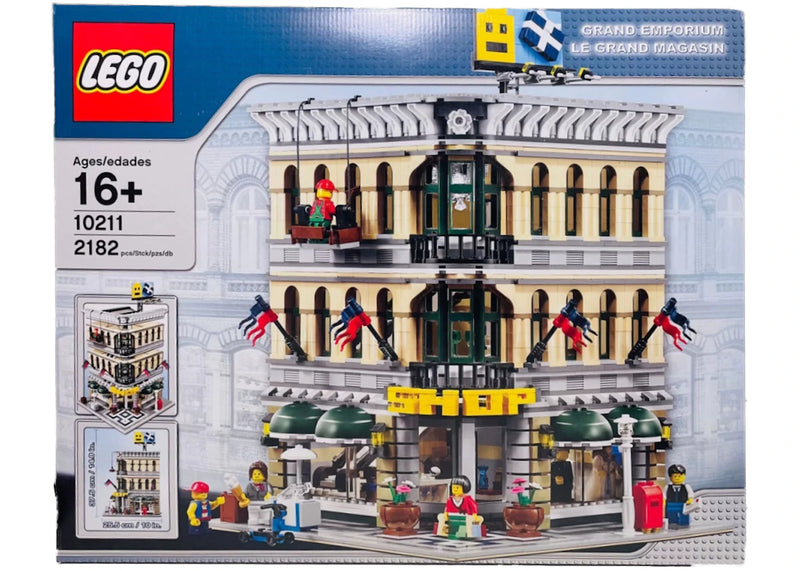 The LEGO Creator Grand Emporium Set 10211 is part of the LEGO modular buildings collection. Made up of 2,182 pieces, the LEGO Grand Emporium is full of details that include rotating front door, escalators, and a window washer. The LEGO Grand Emporium Set 10211 also includes seven minifigures.