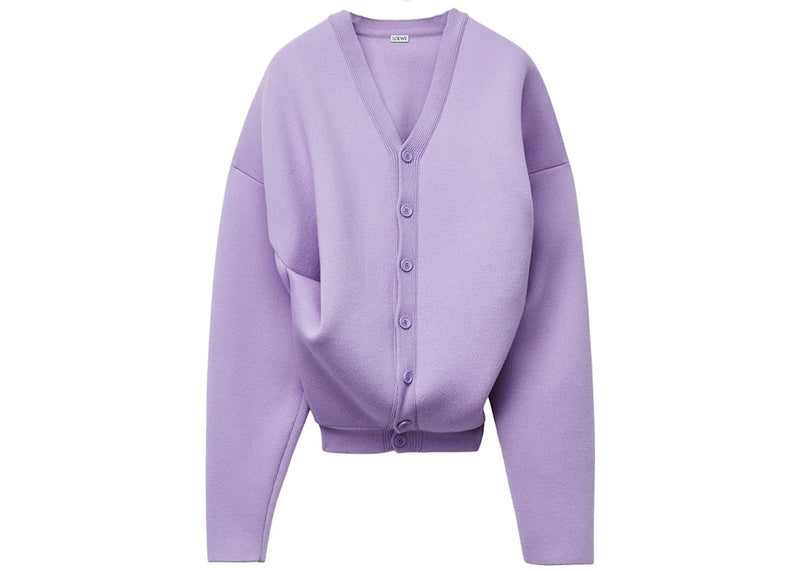 The LOEWE Draped Cardigan in Wool Light Lilac is now available at Side Kicks!