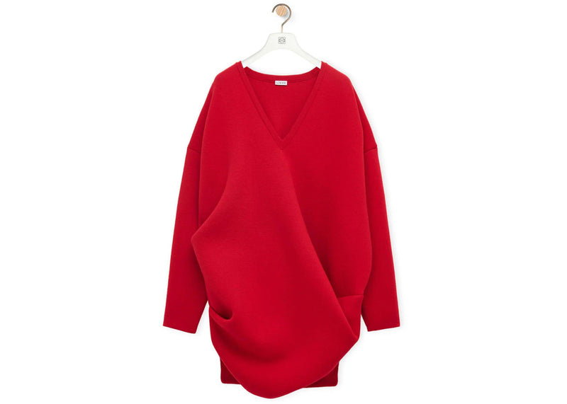 The LOEWE Draped Dress in Wool Blend Red is now available at Side Kicks!