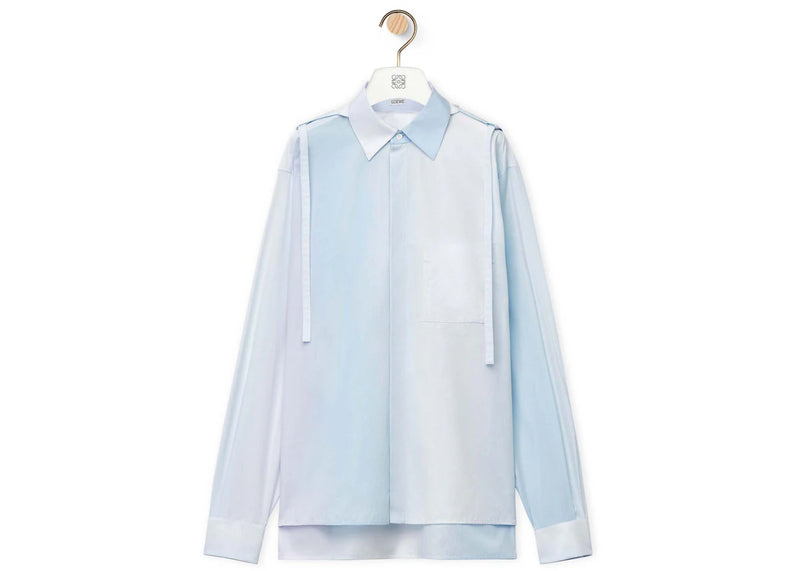 LOEWE Striped Cotton Hooded Shirt Soft Blue/Soft White