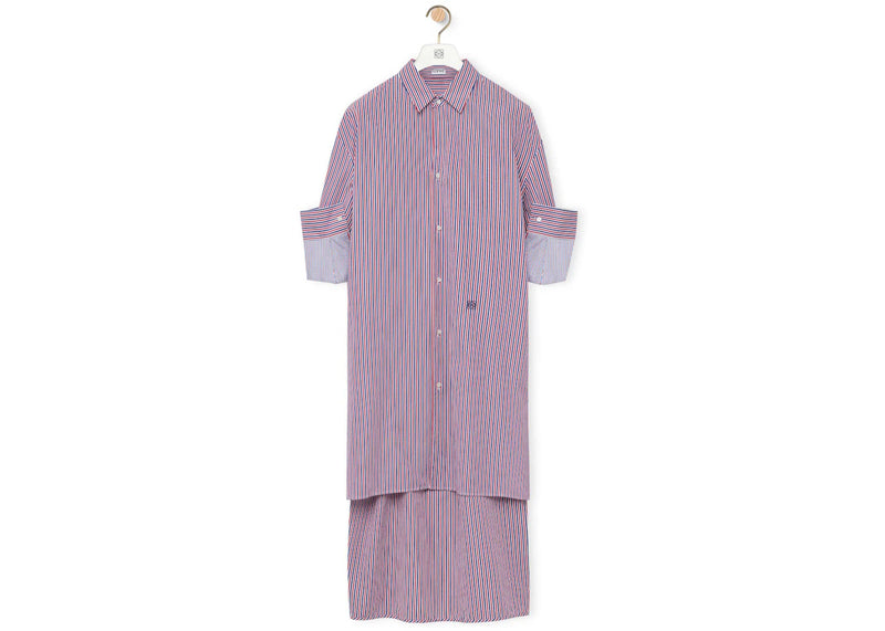 The LOEWE Turn-Up Shirt Dress in Striped Cotton Blue/Red/White is now available at Side Kicks!