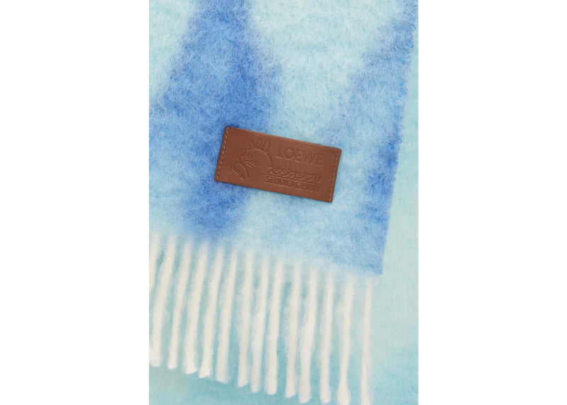 The LOEWE x Howls Calcifer Scarf In Mohair And Wool Blend Blue/Light Blue is now available at Side Kicks!