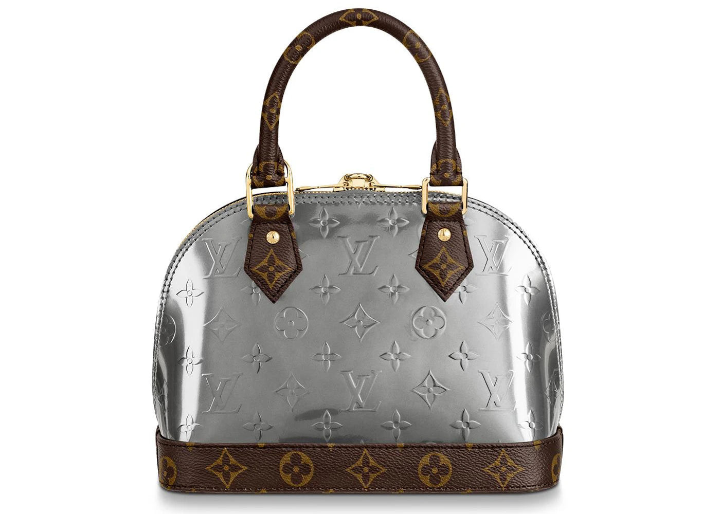 The Louis Vuitton Alma Metallic Monogram Vernis BB Bitume Metallise Metallic Gray is now available at Side Kicks!