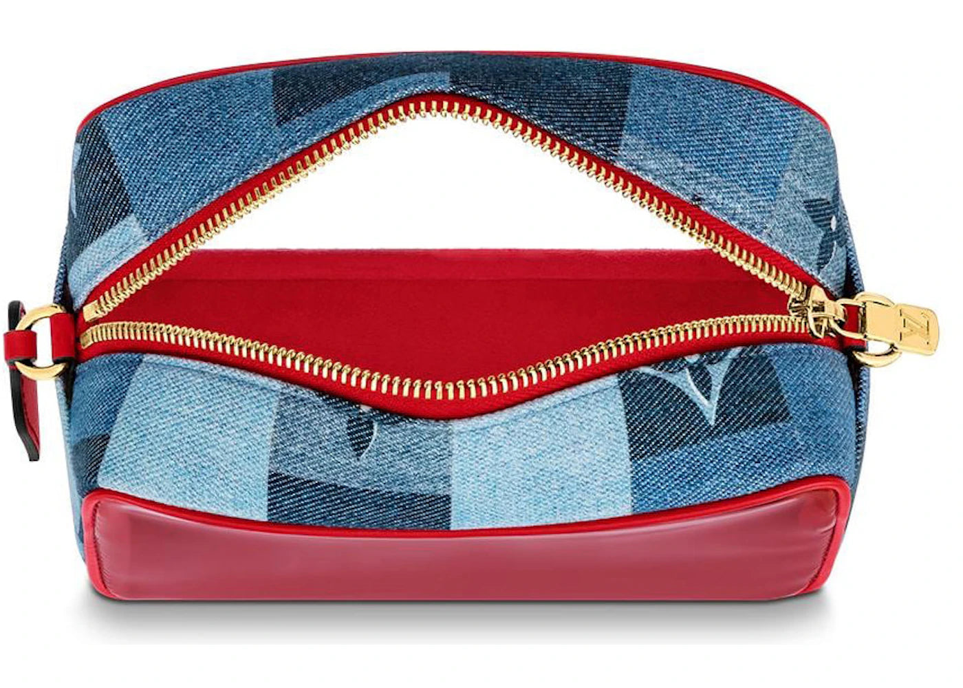 The Louis Vuitton Beach Pouch Denim Monogram Check Blue/Red is now available at Side Kicks!